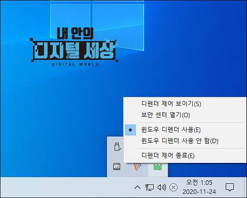 8) 작업표시줄에서도 윈도우 디펜더 백신을 컨트롤할 수 있습니다.