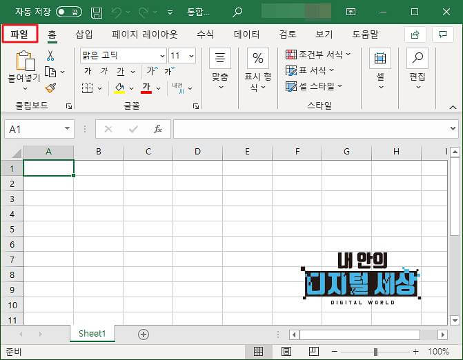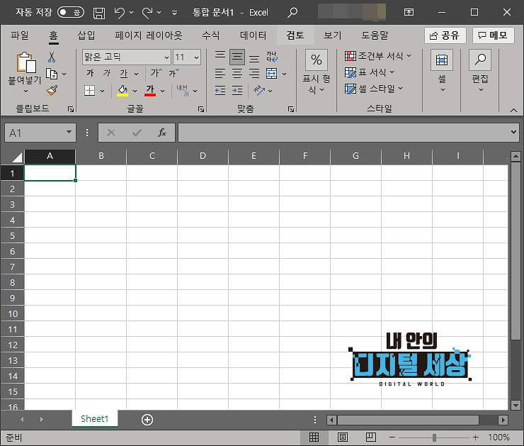 1) MS오피스 프로그램 아무거나 실행합니다. 저는 액셀을 주로 사용하다 보니 엑셀을 실행했습니다.