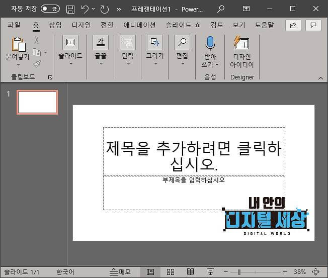 5) 엑셀에서만 설정되는 게 아닌 파워포인트에서도 다크모드가 적용되며 MS 워드 등 모두 다크모드가 적용됩니다.