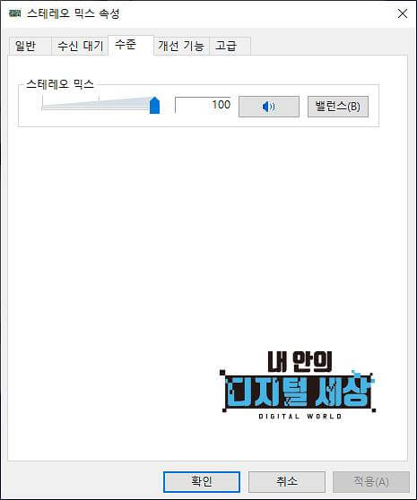 4) 설정했으면 더블클릭하여 믹스 녹음시 볼륨을 적당하게 설정해주는데 저의 경우 100 으로 설정하였습니다.